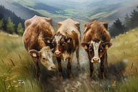 Bestelle dieses Kuh-Wandbild Kühe in den Bergen von Marjolein Deelen als Reproduktion auf Leinwand, Alu-Dibond, als Poster, Fototapete oder Acrylglasbild.