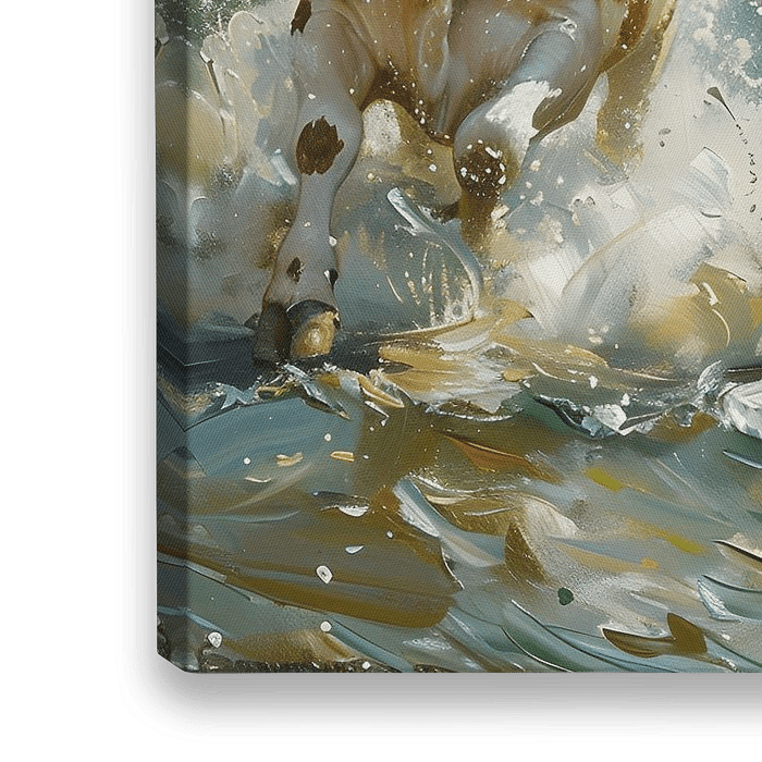 Ein dynamisches Gemälde, das die Energie und Freiheit von Rindern in Aktion zelebriert.