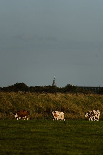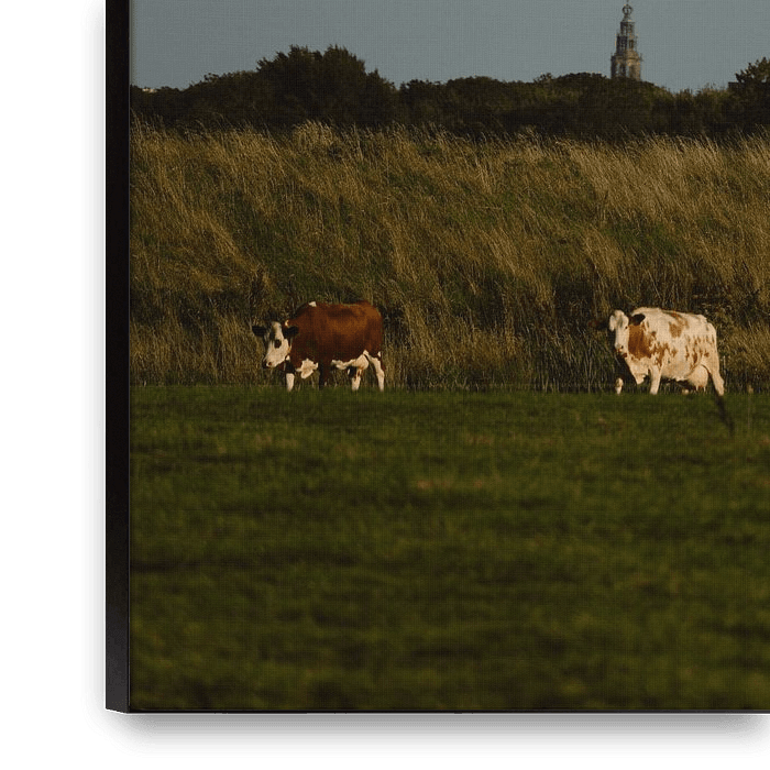 Bestelle dieses Landschafts-Wandbild Kühe unter den Martinitoren von Anne van Wijk als Reproduktion auf Leinwand, Alu-Dibond, als Poster, Fototapete oder Acrylglasbild.