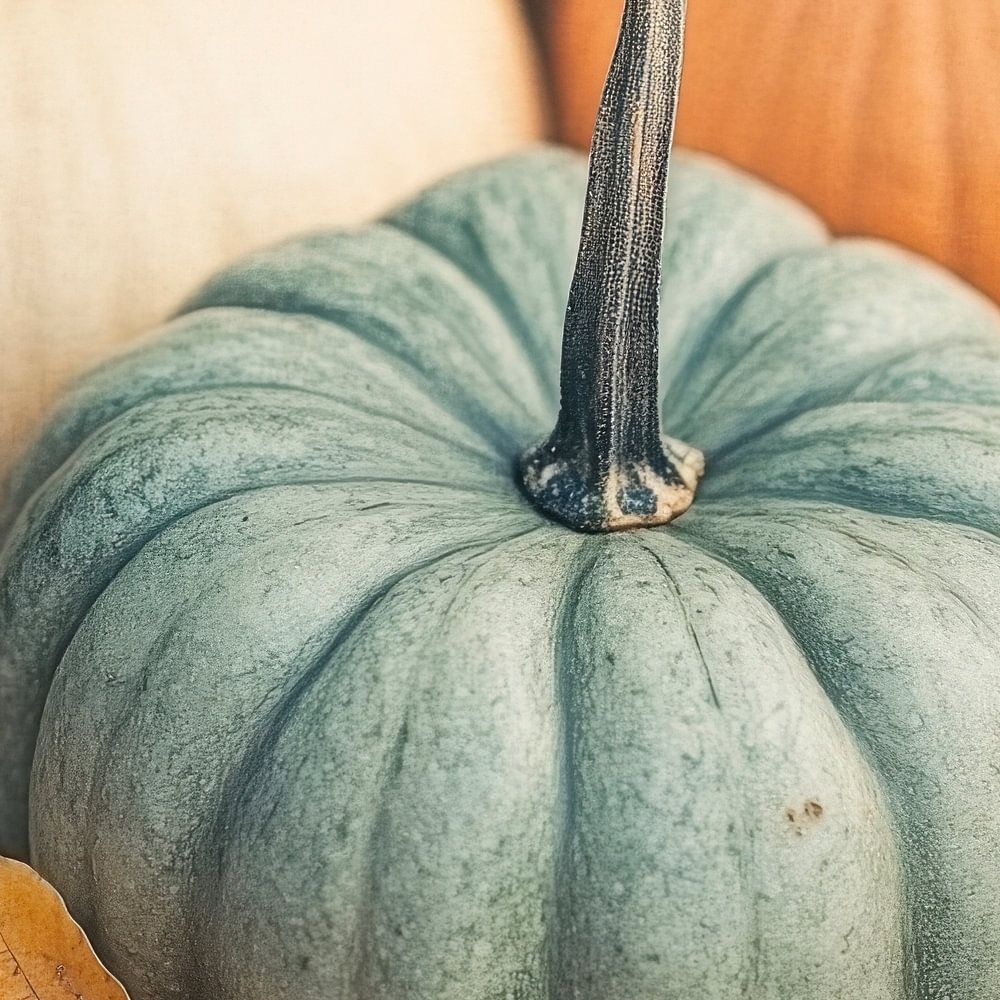Inmitten eines sanften Herbstlichts thronen drei Kürbisse, jeder mit seinem einzigartigen Charakter. Der tiefblaue, der leuchtend orange und der sanfte weiße Schelm scheinen im Einklang mit den raschelnden, goldenen Blättern um sie herum zu tanzen. Ihre runden Formen und sanften Kurven fangen die Essenz der Jahreszeit ein und laden zu festlichen Momenten ein.