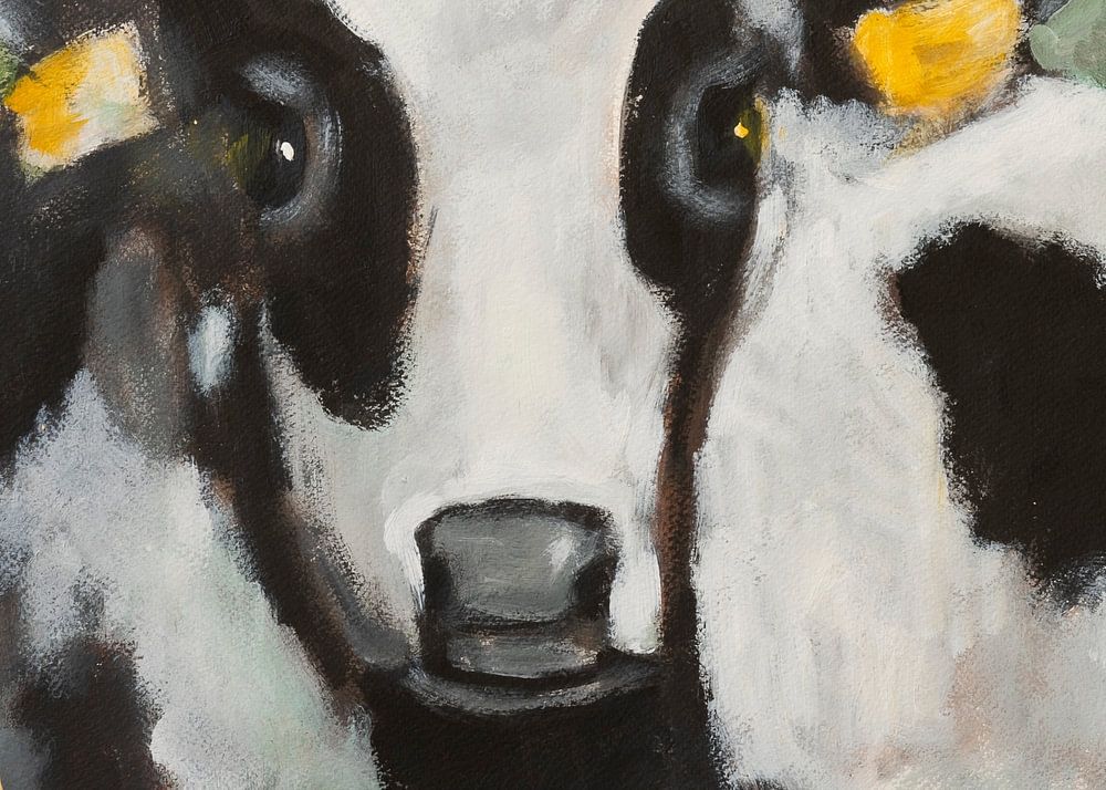 Wunderbar ruhig liegt dieses Kalb im Gras und schaut einen erstaunt an.