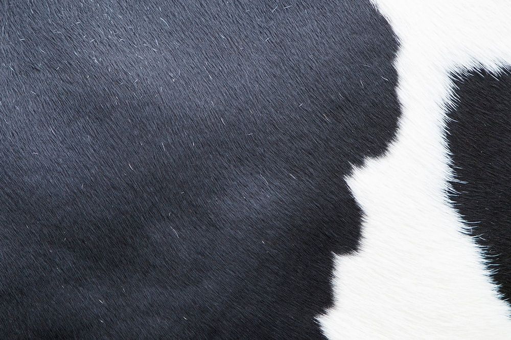 kuhfell einer schwarz-weißen kuh. fast abstraktes muster aus schwarz und weiß. dieses tier fühlt sich wohl in seinem fell und glänzt in der sonne. gesunde tierhaltung ist somit möglich. schöner landwirtschaftlicher teppich für die wand.