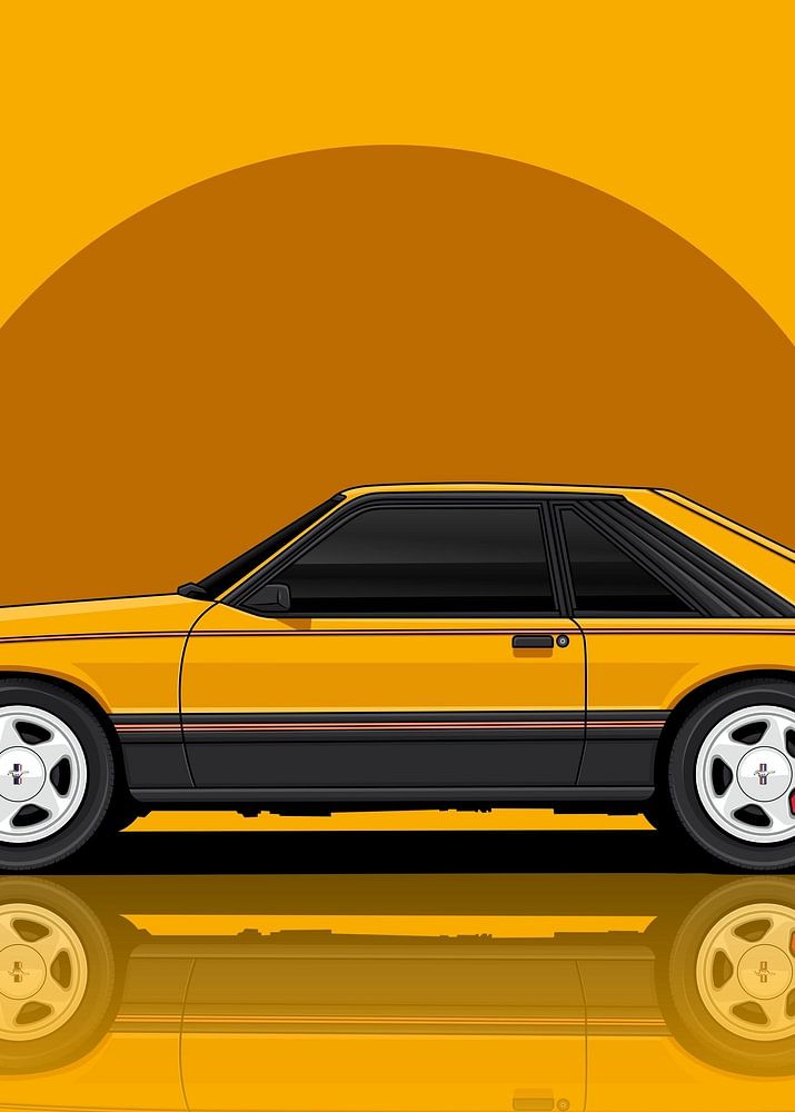 Kunst Auto, Zeichnen Illustration Kunst 1979 Ford Mustang Cobra. Cartoon Auto Kunst Auto 1979 Ford Mustang Cobra.