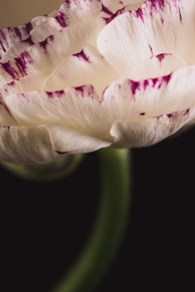 Dieses Fotokunstwerk fängt die elegante Schönheit einer cremefarbenen Ranunkel ein. Die üppigen, geschichteten Blütenblätter strahlen Raffinesse und Zartheit aus, während die violetten Details einen Hauch von Kontrast und Tiefe verleihen. Das Spiel von Licht und Schatten hebt die zarten Strukturen und Formen der Blume hervor. Dieses Kunstwerk zelebriert den anmutigen Charme der Ranunkel und lädt Sie ein, ihre raffinierte Schönheit und harmonische Farbkombination zu bewundern.