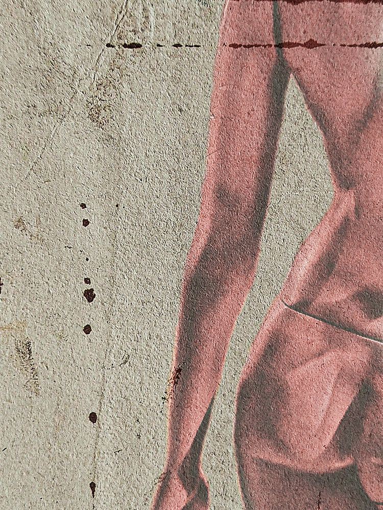 Die Rückseite einer Gouache auf Papier, die ich für ein eigenes Werk verwendet habe: die Rückseite einer Schaufensterpuppe. Auf Leinwand und anderen Materialien.