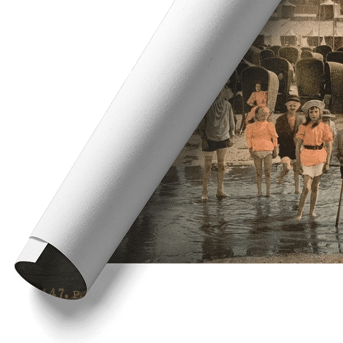 Bestelle das Foto Kurhaus & Scheveninger Strand von Vintage Afbeeldingen als Reproduktion auf Leinwand, Alu-Dibond, als Poster, Fototapete oder Acrylglasbild.