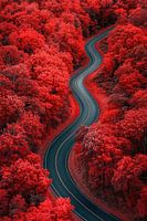 Bestelle dieses Landschafts-Wandbild Kurvige Straße durch rote Bäume von Poster Art Shop als Reproduktion auf Leinwand, Alu-Dibond, als Poster, Fototapete oder Acrylglasbild.