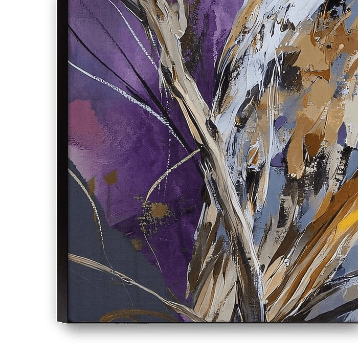 Dieses wunderschöne Gemälde zeigt zwei Eulen, die sich liebevoll gegenübersitzen, umgeben von warmen Tönen und dezenten Goldakzenten. Das Design strahlt Wärme und Harmonie aus, perfekt für jeden Raum, der ein beruhigendes und stilvolles Element gebrauchen kann. Die detaillierten Pinselstriche verleihen den Eulen ein lebendiges Aussehen, während die weichen Hintergrundfarben eine friedliche Atmosphäre schaffen. Ein wunderschönes Kunstwerk für Natur- und Tierliebhaber, das sowohl einen modernen als auch zeitlosen Touch hat.