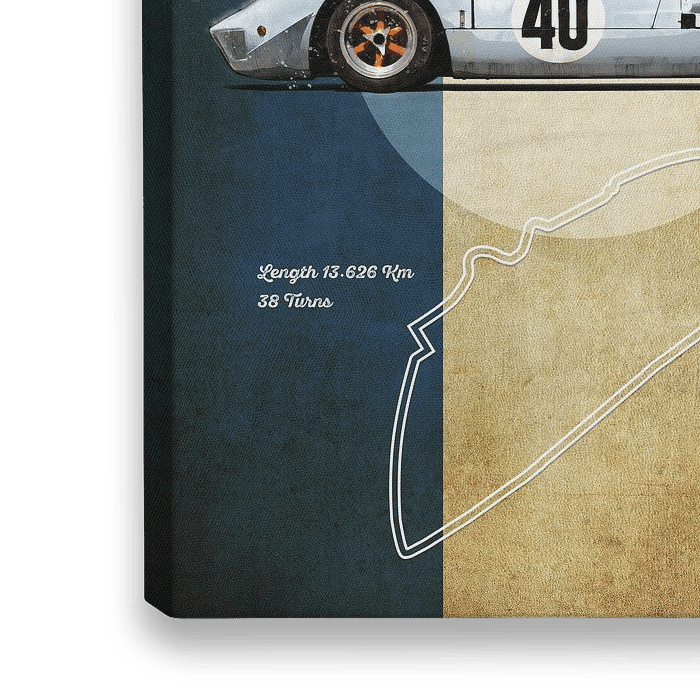 Bestelle diese Illustration LM Racing Ford GT40 Blue von Theodor Decker als Reproduktion auf Leinwand, Alu-Dibond, als Poster, Fototapete oder Acrylglasbild.