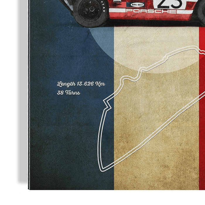 Print-Grafiken von legendären Rennstrecken aus aller Welt. Strecken, die Geschichte schrieben zwischen Triumph und Tragödie.