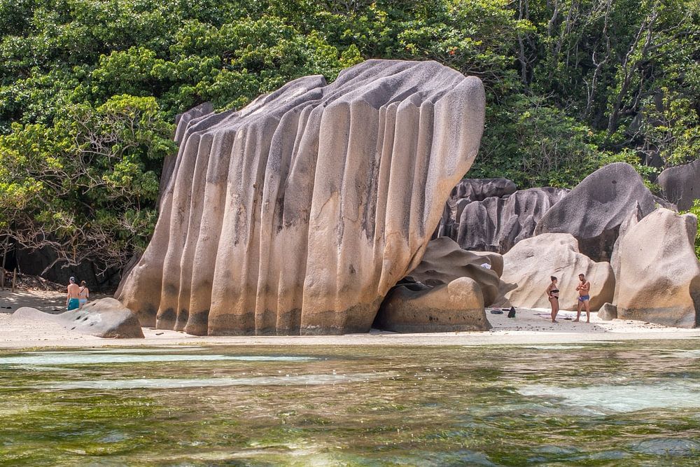 Die Anse Source d’Argent ist ein Traumstrand auf der Insel La Digue (Seychellen). Flaches, türkisblaues Wasser, weißer Sandstrand und eindrucksvolle Granitfelsen machen ihn zu einem der schönsten Strände auf den Seychellen und der ganzen Welt.