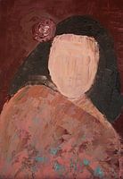 Diese Dame ist Teil einer Serie von Damenporträts. Die Gemälde wurden mit verschiedenen Farbarten geschaffen, die mit Palettenmessern und Pinseln aufgetragen wurden.