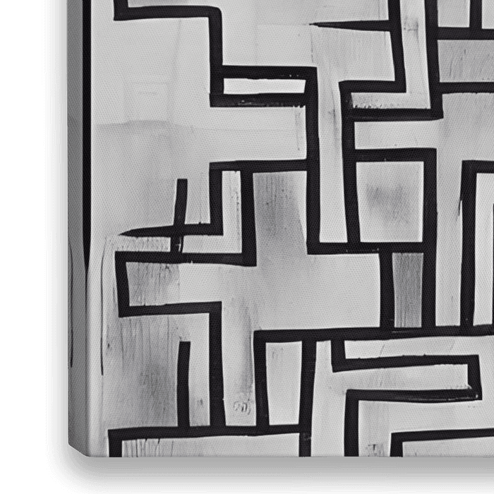 Bestelle dieses abstrakte Wandbild Labyrinth schwarz weiß grau von Renato Daub als Reproduktion auf Leinwand, Alu-Dibond, als Poster, Fototapete oder Acrylglasbild.
