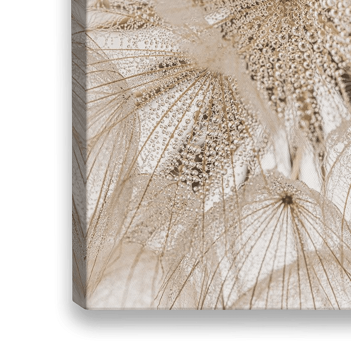 Bestelle dieses abstrakte Wandbild Ländliche Gelassenheit: Tropfen auf einem Flusenball von Marjolijn van den Berg als Reproduktion auf Leinwand, Alu-Dibond, als Poster, Fototapete oder Acrylglasbild.