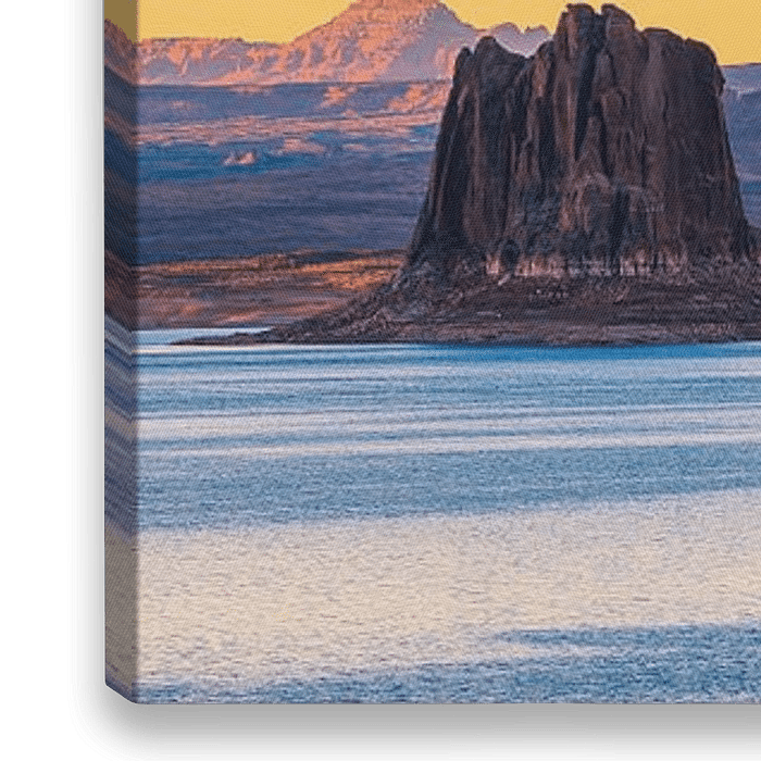 Blick über die Padre Bay bei Sonnenaufgang vom Cookie Jar Butte am Lake Powell, an der Grenze zwischen Utah und Arizona, USA.