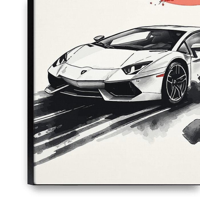 Bestelle diese Illustration Lamborghini Countach Sumi-e von MIROKKU als Reproduktion auf Leinwand, Alu-Dibond, als Poster, Fototapete oder Acrylglasbild.