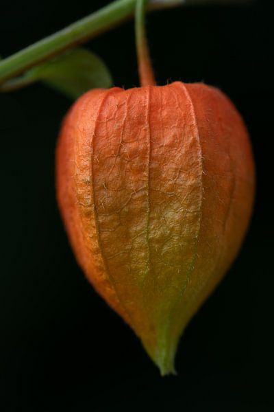 Bestelle das Foto Lampionblume vor dunklem Hintergrund von Ulrike Leone als Kunstdruck auf Leinwand, Alu-Dibond, als Poster, Fototapete oder Acrylglasbild.