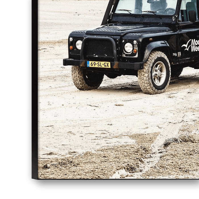 Drei schwarze Landrover am Nordseestrand von Terschelling. Dieses Foto wurde an einem frühen Morgen im Winter von 2016 gemacht