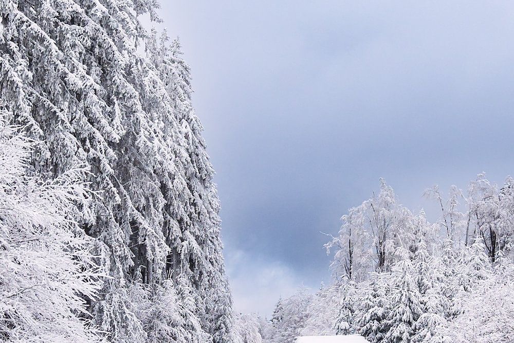 Landschaft im Winter im Thüringer Wald in der Nähe von Schmiedefeld am Rennsteig.