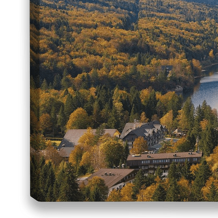 Bestelle dieses Landschafts-Wandbild Landschaft mit Bohinjer See im Herbst in Slowenien von iPics Photography als Reproduktion auf Leinwand, Alu-Dibond, als Poster, Fototapete oder Acrylglasbild.