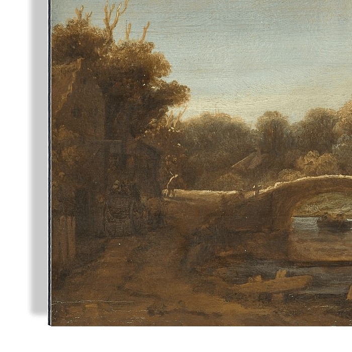 Bestelle Landschaft mit Steinbrücke - Rembrandt van Rijn als Reproduktion auf Leinwand, Alu-Dibond, als Poster, Fototapete oder Acrylglasbild.