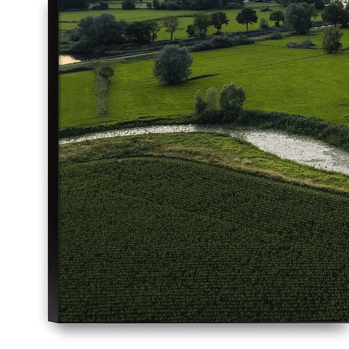 Erleben Sie die ruhige Schönheit des Ackerlandes um Hattem, eingefangen in einem atemberaubenden Drohnenfoto. Dieses einzigartige Bild zeigt die weiten grünen Felder, rustikalen Bauernhöfe und sich schlängelnden Flüsse, die die malerische Landschaft von Gelderland ausmachen.