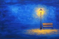 Bestelle diese Malerei Laterne und Bank in der Dämmerung von Poster Art Shop als Reproduktion auf Leinwand, Alu-Dibond, als Poster, Fototapete oder Acrylglasbild.