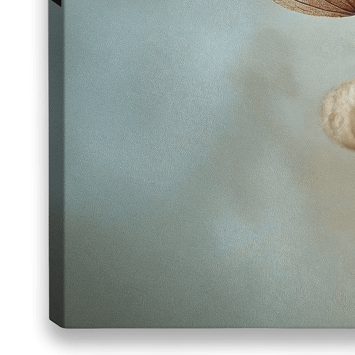 Eine zarte Komposition aus transparenten Laternenblumen, fotografiert in sanften, verträumten Tönen. Die Skelettstrukturen der Blumen werden in einem Spiel aus Licht und Schatten eingefangen, wobei die feinen Adern vor einem nebligen Hintergrund ein spitzenartiges Muster bilden. Die warmen Bernstein- und Weißtöne erzeugen eine…