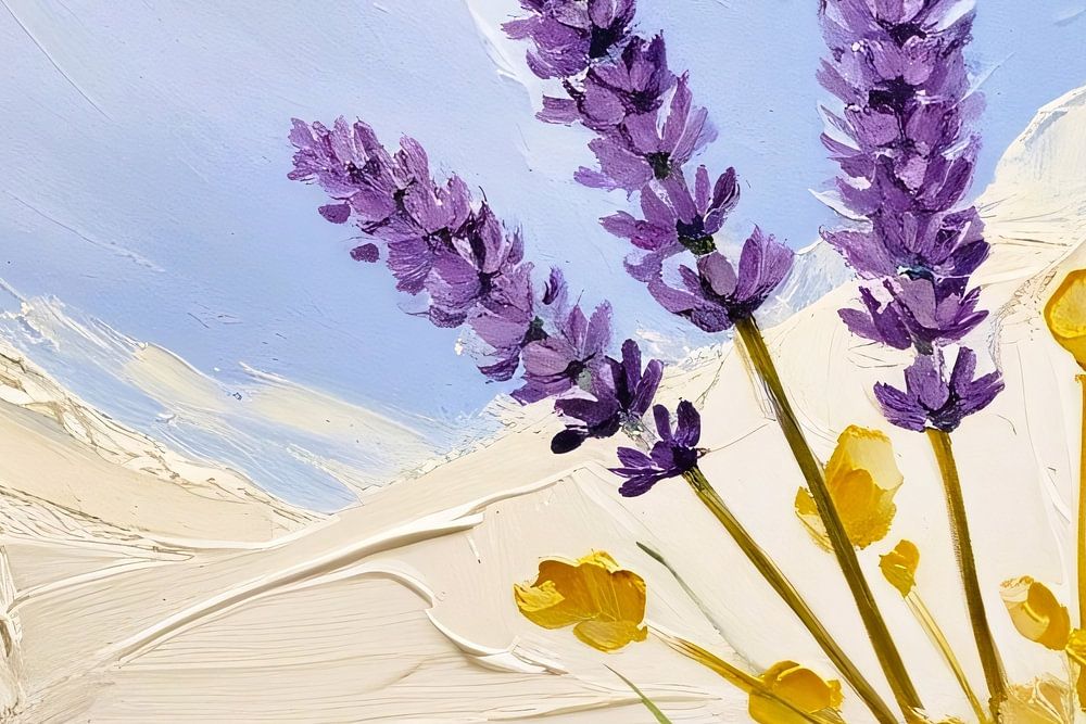 Dieses wunderschöne Gemälde bringt die Gelassenheit der Natur in Ihr Zuhause: zarte Lavendelblüten vor einem weichen, ruhigen Hintergrund. Die ruhigen Farben von Violett, Gelb und Grün, kombiniert mit subtilen Pinselstrichen, schaffen eine ruhige und entspannende Atmosphäre. Dieses Kunstwerk verleiht jedem Raum Eleganz und eignet sich perfekt für ein Wohnzimmer, ein Schlafzimmer oder eine Küche. Das kräftige Violett des Lavendels bildet einen schönen Kontrast zu dem hellen und luftigen Hintergrund, so dass die Blumen auf subtile Weise hervortreten. Ein ideales Werk für Naturliebhaber und alle, die einen Hauch von Raffinesse in ihr Zuhause bringen wollen.