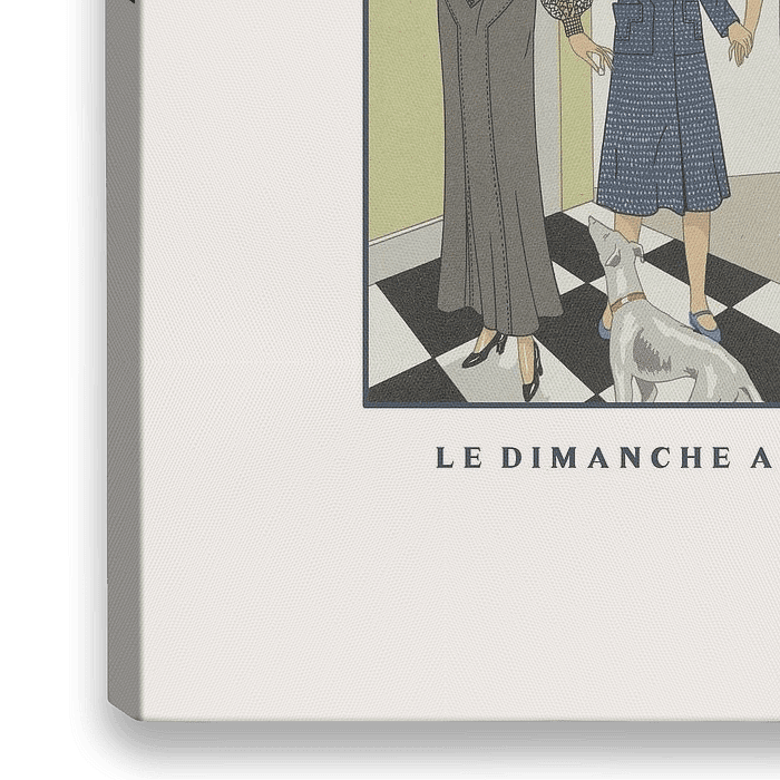 Bestelle dieses Art Deco-Wandbild Le dimache après-midi | Historischer Mode-Druck Art Deco | Kleiner Hund, Kaffeezeit | Klassischer Re von NOONY als Reproduktion auf Leinwand, Alu-Dibond, als Poster, Fototapete oder Acrylglasbild.