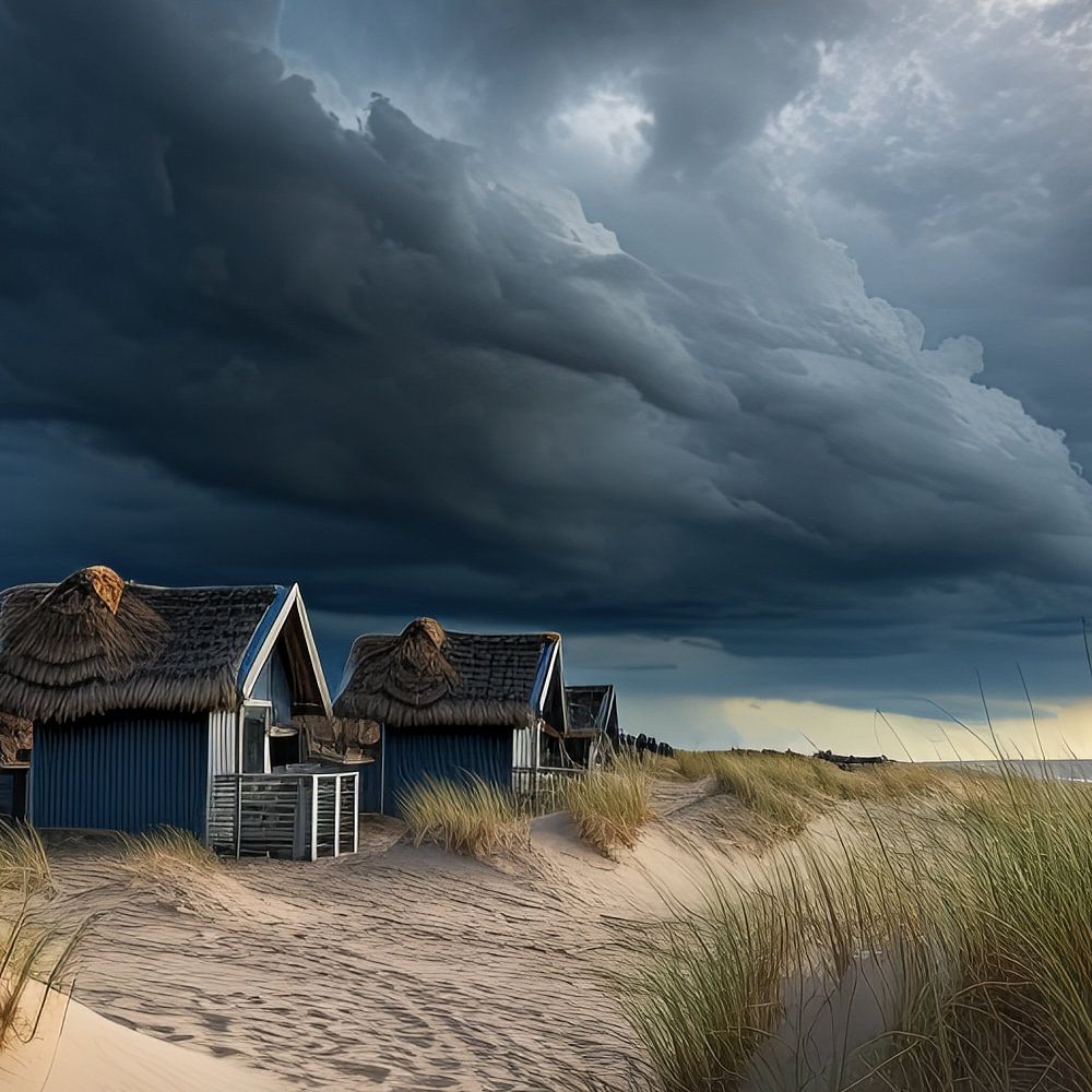 Bild des Lebens an der Küste mit dramatischem Licht