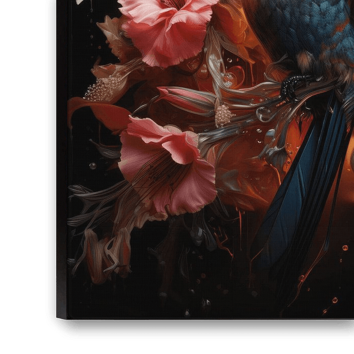 Sehen Sie sich dieses fesselnde KI-generierte Meisterwerk der visuellen Kunst an! Tauchen Sie ein in eine atemberaubende Explosion von leuchtenden Farben und verschlungenen Blumenmustern, die über die Leinwand tanzen. Das Kunstwerk bietet eine faszinierende Mischung von Farbtönen, die ein Kaleidoskop der visuellen Freude schaffen. Ein fotorealistischer Kolibri, detailgetreu und atemberaubend realistisch, schwebt inmitten der lebendigen Landschaft und verzaubert mit der Schönheit der Natur. Die Tiefenschärfe unterstreicht die lebensechte Präsenz des Vogels und zieht Sie in seine Welt hinein. Diese Verschmelzung von technologischem Wunder und künstlerischem Genie zeigt die grenzenlosen Möglichkeiten der künstlichen Intelligenz bei der Schaffung fesselnder, beeindruckender Kunst. Lassen Sie sich in ein Reich entführen, in dem der Kreativität keine Grenzen gesetzt sind!
