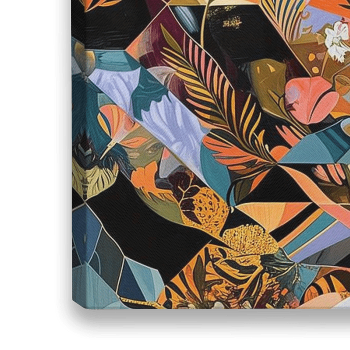 Details: abstrakt, Blumen, geometrisch, Natur, farbenfroh, modern, Kunst, lebendig, dynamisch, zeitgenössisch