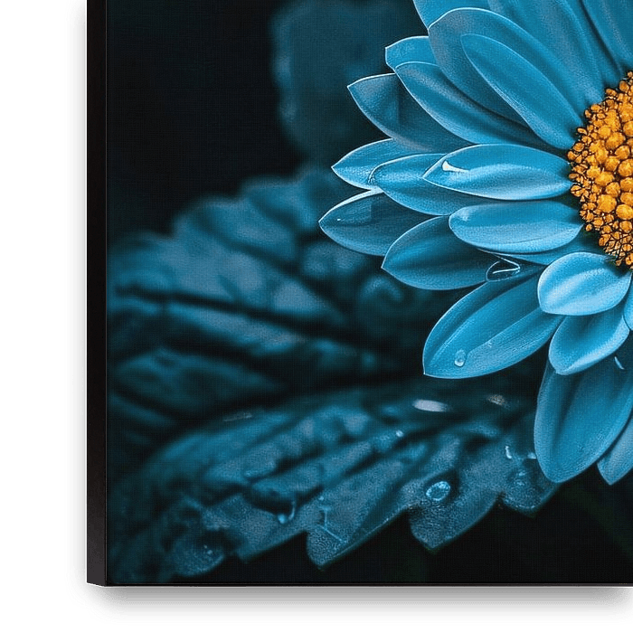 Dieses bezaubernde Bild erweckt die natürliche Schönheit von Blumen in einem dynamischen und modernen Design zum Leben. Die leuchtenden Farben der Blütenblätter, die von strahlendem Gelb bis zu tiefem Blau reichen, heben sich von einem dunklen Hintergrund ab. Dieses Kunstwerk fängt das Wesen der Natur in einem Moment der Heiterkeit und…