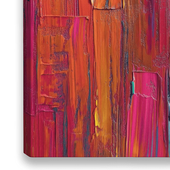 "Vivid Vision" ist ein auffallendes abstraktes Kunstwerk, das die Kraft von Farbe und Textur in einer dynamischen Verschmelzung erforscht. Im Mittelpunkt des Werks steht das kühne Auge, das teilweise zwischen Schichten aus lebhaftem Orange, Rosa und Türkis sichtbar ist und einen starken Blickpunkt bildet. Die Textur der Komposition wird…