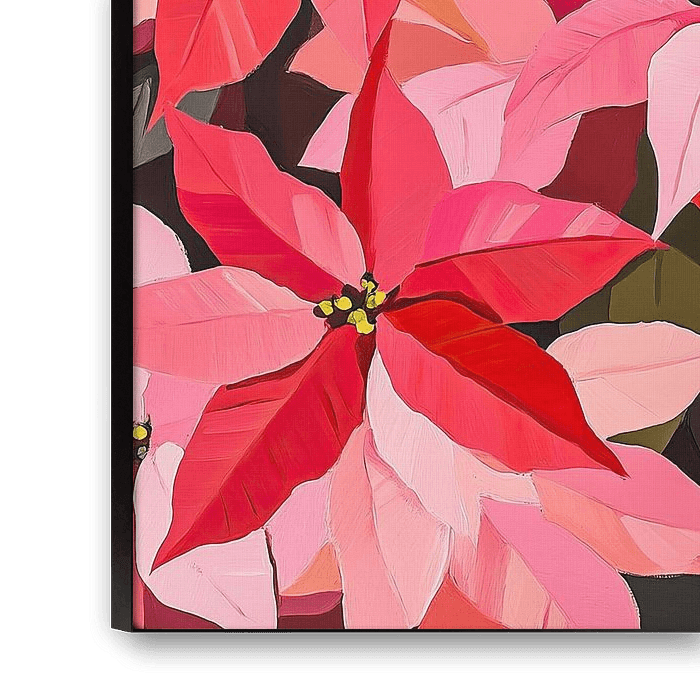 Details: Blumenbild, Weihnachtsstern, lebendige Farben, moderne Kunst, rot, rosa, grün, Pflanzenbild, florale Kunst, Weihnachtsmotiv