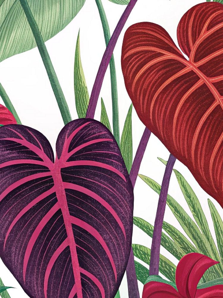 Tauchen Sie mit diesem atemberaubenden, handillustrierten Aquarelldruck in eine lebendige Dschungeloase ein. Dieses Kunstwerk fängt die vielfältige Schönheit des tropischen Blattwerks ein und zeigt eine dynamische Komposition großer, exotischer Blätter. Die reichhaltige Farbpalette zeigt auffällige Variationen, darunter tiefes Smaragdgrün, Rubinrot, leuchtendes Pink und samtiges Violett, vor einem strahlend weißen Hintergrund. Dieses Stück eignet sich perfekt, um jedem Raum einen Hauch von Farbe und einen Hauch von von der Natur inspirierter Raffinesse zu verleihen, egal ob es sich um ein Wohnzimmer, ein Schlafzimmer oder ein Heimbüro handelt. Ideal für Liebhaber botanischer Kunst, Pflanzenliebhaber und alle, die auf der Suche nach einem mutigen, modernen Wanddekor sind, das die Gelassenheit der Tropen ins Haus bringt. Diese auf hochwertigem Archivpapier gedruckte Illustration ist ein echtes Statement, das die komplizierten Muster und Strukturen der natürlichen Welt zelebriert.