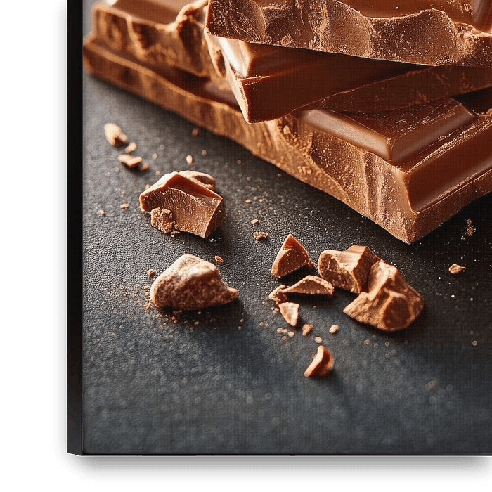 Ein verlockendes Arrangement aus köstlich glänzenden Schokoladenstücken, die zum Naschen einladen. Ihre samtige Textur und die reichhaltige Farbe verleihen jedem Raum eine süße Eleganz. Perfekt für die Küche, wo sie den Gaumen erfreuen und den Appetit anregen. Ein wahres Fest für die Sinne!