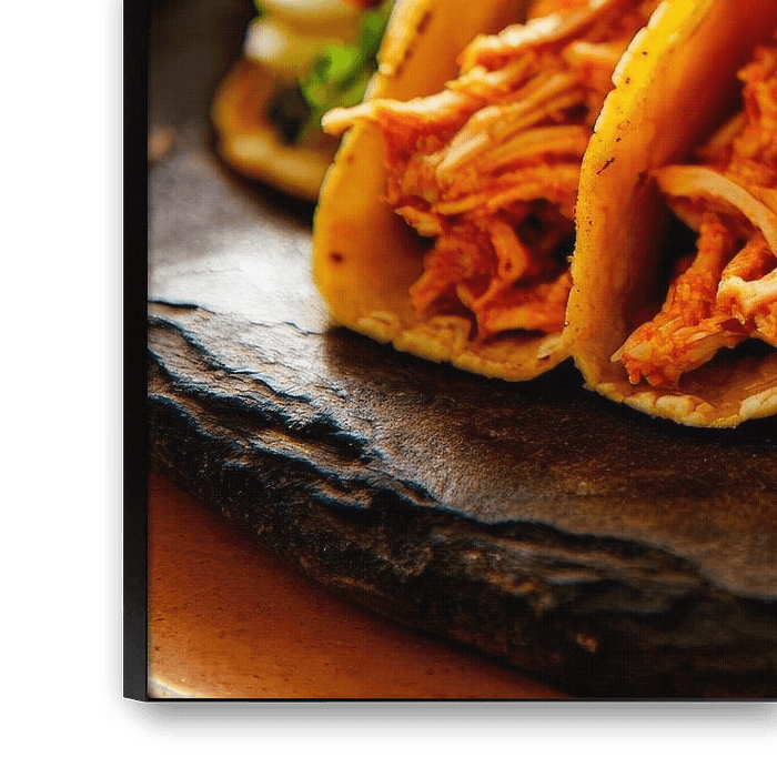 Ein Genuss für die Sinne: Saftige Tacos, gefüllt mit zartem Hähnchen, frischen Avocado-Stücken und knackigem Gemüse, laden zu einer kulinarischen Reise ein. Die leuchtenden Farben und die appetitliche Anordnung machen dieses Bild zum idealen Blickfang für die Küche, wo es die Vorfreude auf gesunde, schmackhafte Mahlzeiten weckt.