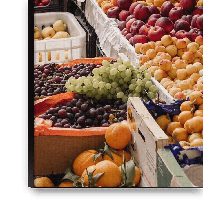 Dieses Foto hat die leuchtenden Farben und die üppige Frische der Früchte auf dem Markt in Tetouan, Marokko, eingefangen. Der Überfluss an Obst vermittelt ein Gefühl von Gesundheit.