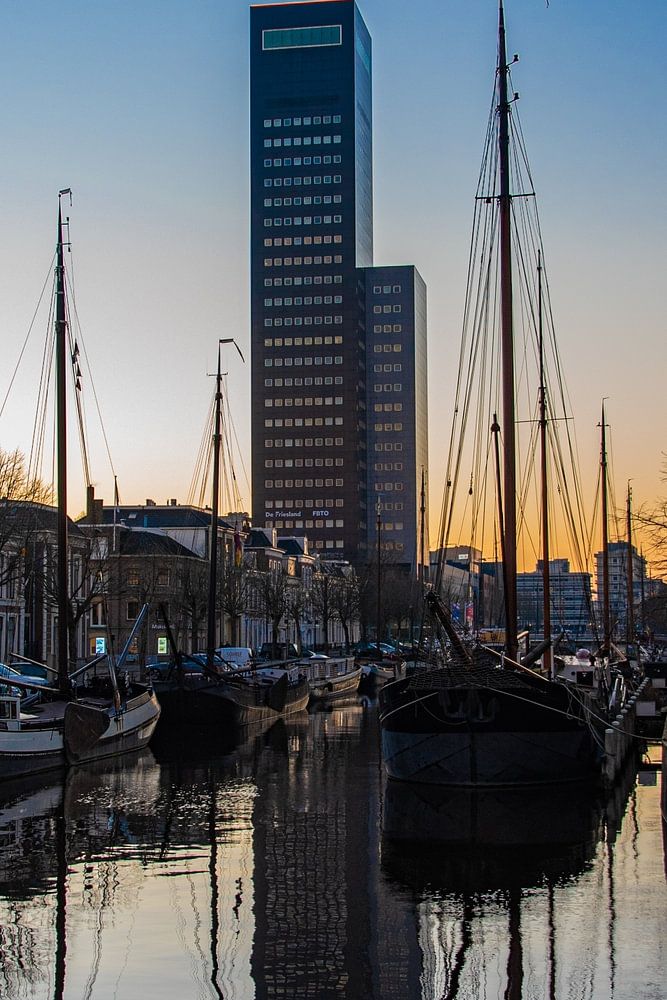 Dies ist ein stimmungsvolles Stadtbild von Leeuwarden am Abend. Jeder, der schon einmal in Leeuwarden war, kennt dieses Bild.