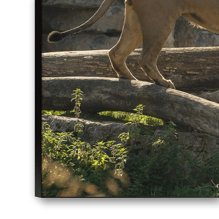 Twee leeuwen op een boomstam in de dierentuin in de zon.