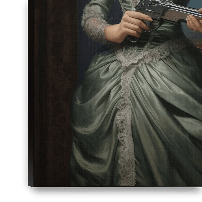 Porträt einer viktorianischen Dame mit einer Pistole.