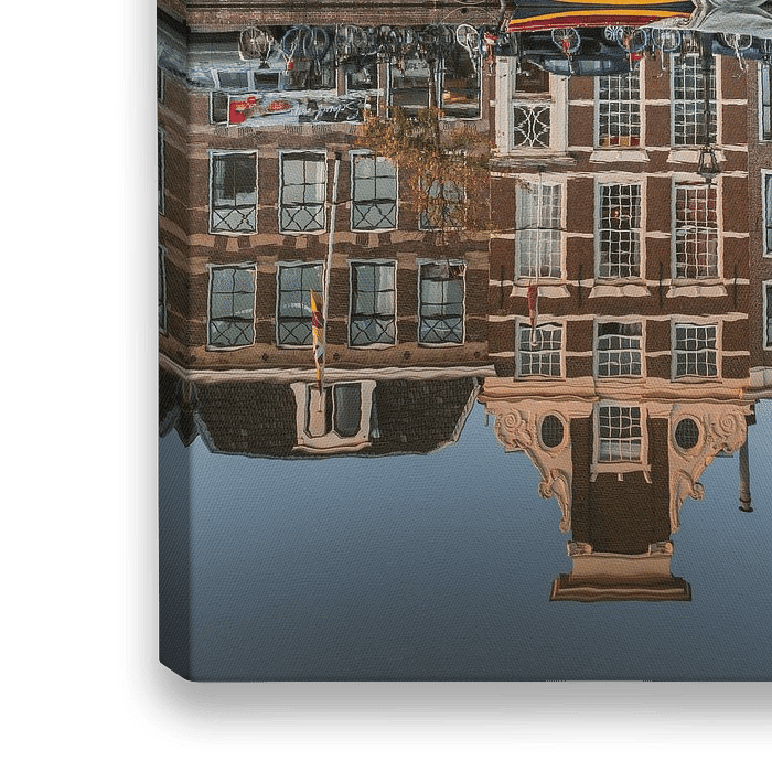 Bestelle das Foto Leiden - Spiegelung von 4 Grachtenhäusern im Wasser (0174) von Reezyard als Reproduktion auf Leinwand, Alu-Dibond, als Poster, Fototapete oder Acrylglasbild.