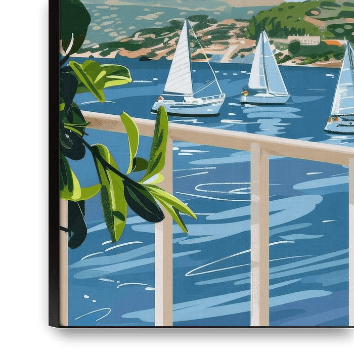 Bestelle dieses Landschafts-Wandbild Lemonen und Segelboote am Wasser von Poster Art Shop als Reproduktion auf Leinwand, Alu-Dibond, als Poster, Fototapete oder Acrylglasbild.