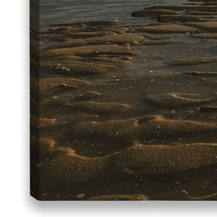 Die letzten Strahlen der Sonne lassen den Sand golden leuchten. Bald wird die Sonne hinter den Wolken verschwinden und untergehen, und dann wird die Nacht hereinbrechen.