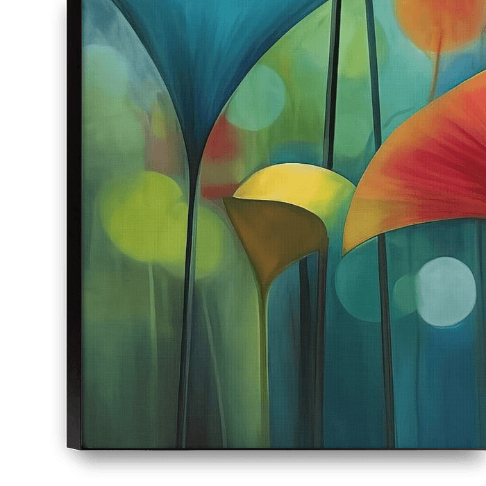 Bestelle dieses abstrakte Wandbild Leuchtende Blumen von Wall Wonder als Reproduktion auf Leinwand, Alu-Dibond, als Poster, Fototapete oder Acrylglasbild.