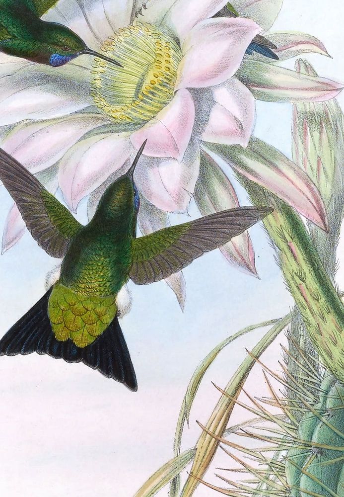 Glühende Puff-Leg (Eriocnemis vestita), John Gould Es ist zu bedauern, dass ein angemessenerer Begriff als Ves -iTus nicht als spezifische Bezeichnung dieses wunderbaren kleinen Vogels ausgewählt worden war - ich sage wunderbar empfohlen; Für jeden, der zum ersten Mal in meiner Sammlung, in der diese Art platziert ist obere Schwanzbedeckungen. Diese Illustration wurde in ihre ursprüngliche Lebendigkeit wiederhergestellt, indem die Farben verstärkt und unerwünschte Markierungen entfernt werden. Eine Monographie der Trochilidæ oder der Familie von Kolibris wurde zwischen 1849 und 1887 vom englischen Ornithologen John Gould veröffentlicht. Diese monumentale Arbeit zeigt und beschreibt alle bekannten Arten von Kolibris zu dieser Zeit - mit 418 lithografischen Platten und Informationen zu 537 Arten. "