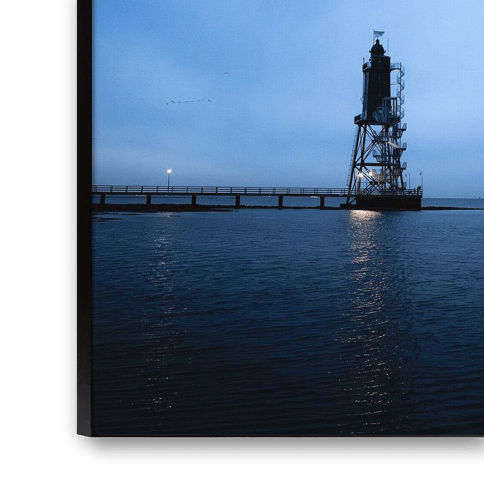 Dieses stimmungsvolle Foto zeigt den bekannten Leuchtturm Obereversand an der Nordsee. Ich habe das Bild im Herbst während der Flut aufgenommen, sodass auch das Meer gut zur Geltung kommt.
