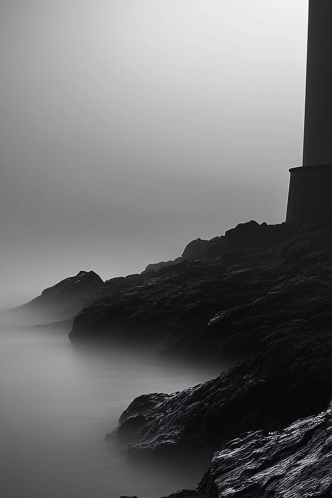Diese minimalistische Fotografie zeigt einen majestätischen Leuchtturm an einer zerklüfteten, felsigen Küste. Der kräftige Lichtstrahl des Leuchtturms bricht durch den Dunst und schafft einen dramatischen Kontrast zwischen Licht und Schatten. Das schwarz-weiße Farbschema unterstreicht den zeitlosen und ruhigen Charakter dieses Kunstwerks. Perfekt für Liebhaber von Meereslandschaften und beruhigenden Naturbildern. Dieses Design verleiht jedem Raum, vom Büro bis zum Schlafzimmer, eine ruhige und doch kraftvolle Atmosphäre und ist eine ideale Wahl für eine stilvolle Einrichtung.